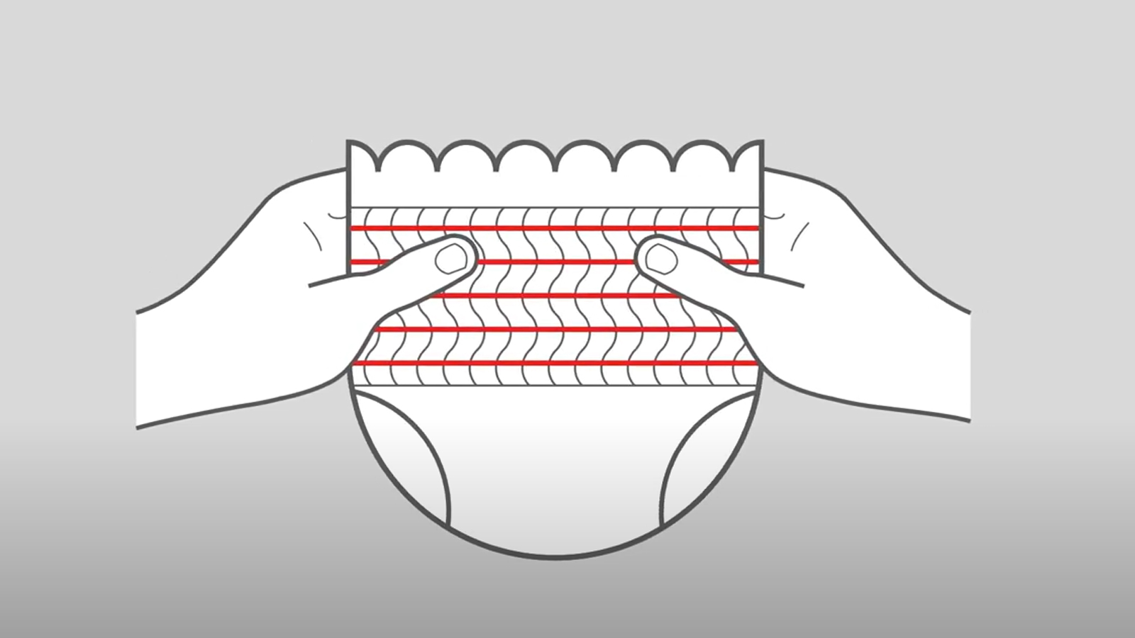 Mit elastischen Fäden bekommen Vliesstoffe eine neue Form und Funktion. Vor allem im Beinabschluss und Taillenbündchen sind Windeln damit ausgestattet.