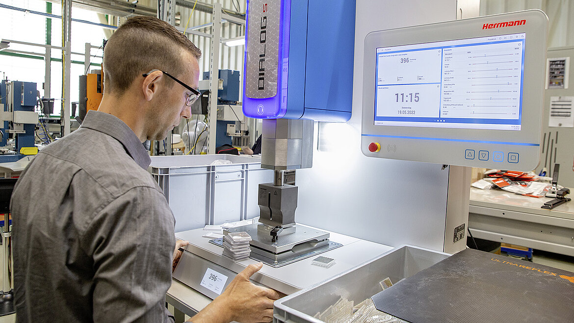 Dazu können unterschiedlichste Sensoren und Hilfsmittel an die HiQ angeschlossen werden, mit deren Hilfe die Maschine Sie vor Fehlern im Produktionsprozess warnt oder diese sogar direkt verhindert.
