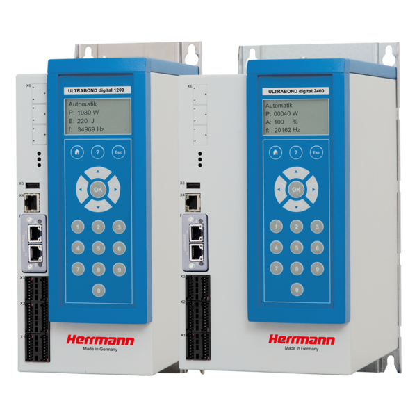 Dauerschallgeneratoren für kontinuierliche Applikationen – die digitale Generatorentechnologie der ULTRABOND Produktbaureihe ist speziell für den kontinuierlichen Schweißprozess von bis zu 8000 W Dauerleistung konzipiert. Ein DSP (Digital Signal Processor) kompensiert Störeinflüsse und gewährleistet eine reproduzierbare Ultraschallabgabe bei 100% Einschaltdauer. Der Ultraschallgenerator ULTRABOND digital wird in den MICROBOND und EASYBOND Systemen von Herrmann eingesetzt.